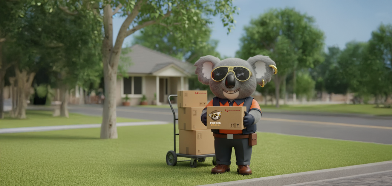 All orders are sent from our Pierced Koala office located on the northern beaches of Sydney, Australia.