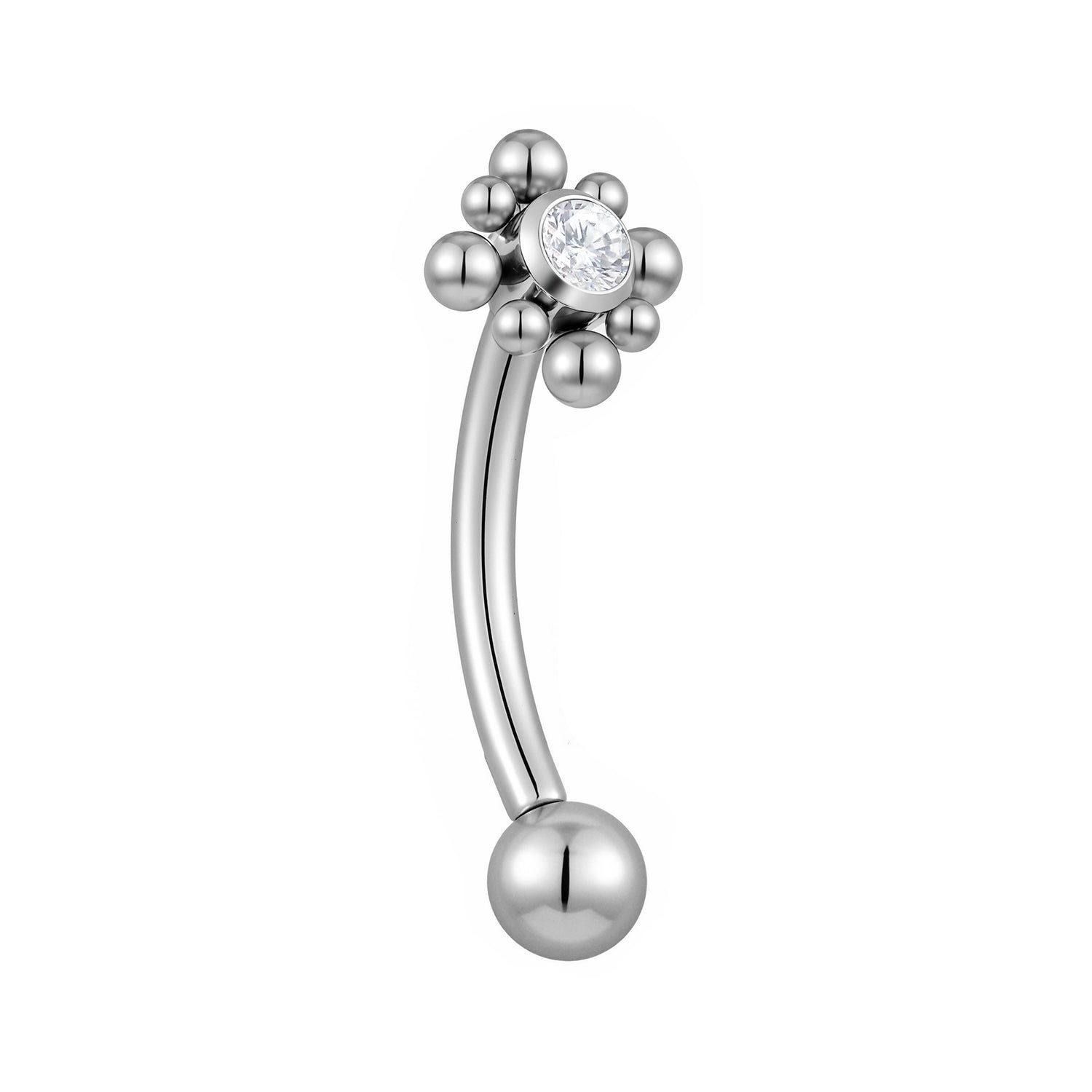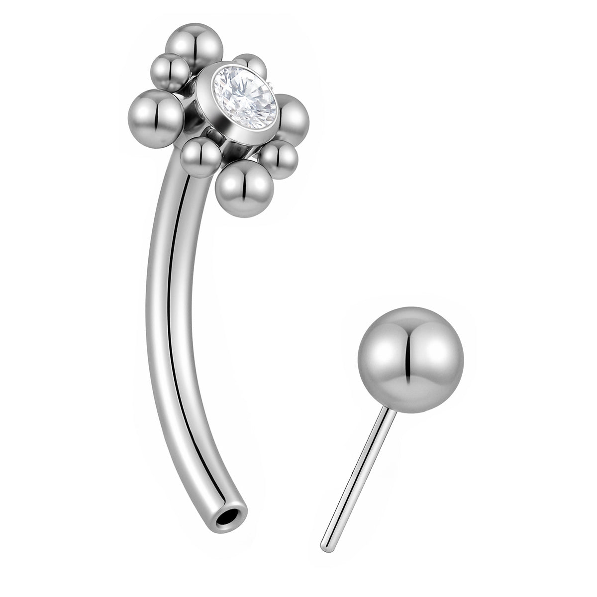 Threadless Flower Gem Curved Barbell 2pc (Titanium - Plain)