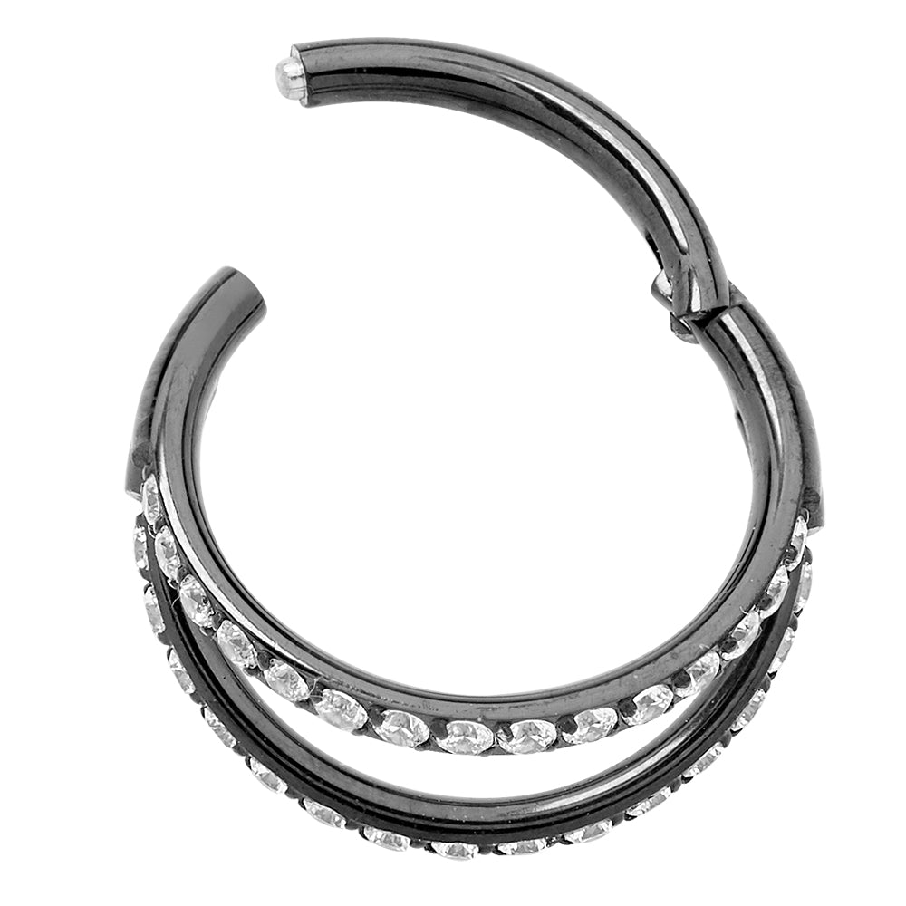 Double Hinged Hoop Gem Segment Ring 2pc (Titanium - Black)