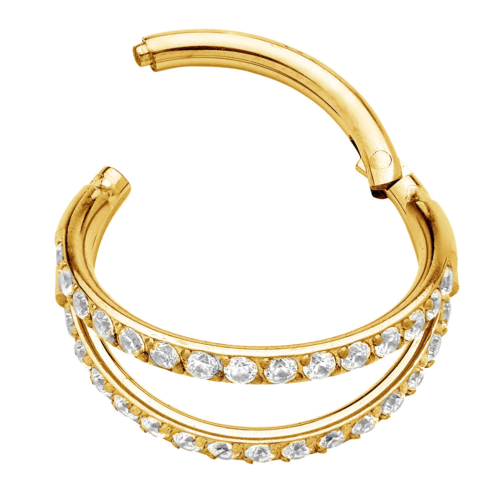 Double Hinged Hoop Gem Segment Ring 2pc (Titanium - Yellow)